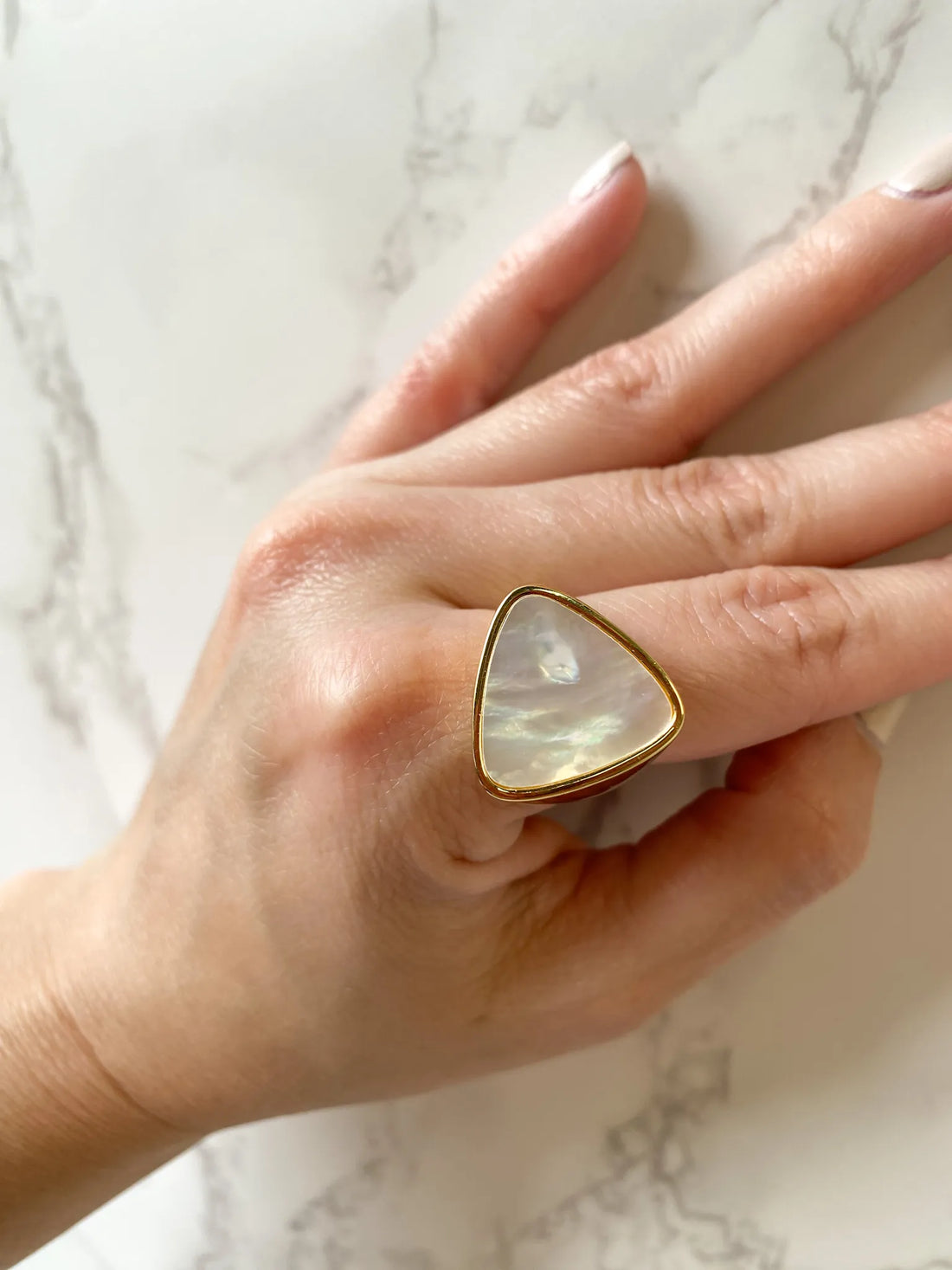 Elegant elastic bracelet with pearls and golden balls interspersed.